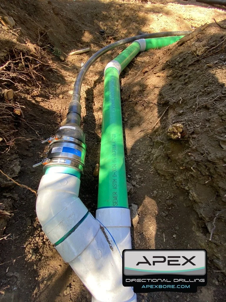 The combination of flexibility and leak-free joints allow for unique and cost-effective types of installation methods that the rigid PVC and Ductile Iron pipes can't use with bell-and-spigot connections. These alternate installation methods (Horizontal Directional Drilling, Pipe Bursting, Sliplining, Plow and Plant, Submerged or Floating Pipe, etc.) can save considerable time and money in most applications.
